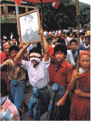 Man erinnere sich an 1988, als nach Jahren der Repression und Misswirtschaft zu massiven Protesten kam: Nachdem Tausende von DemonstrantInnen niedergeschossen wurden, mit einer Niederschlagungsaktion, welche selbst die syrischen Herrscher erröten liesse, bewegte sich die burmesische Junta in ermutigender Weise in Richtung Reform. Sie schaffte das Einparteiensystem ab und kündigte freie Wahlen an. Fast ein Jahr lang erlebte Burma eine beispiellose Öffnung. Politische Versammlungen wurden im ganzen Land geduldet. Doch als im Juli 1989 die demokratischen Kräfte zu stark wurden, griff die Armee ein. Hunderte wurden verhaftet und Aung San Suu Kyi unter Hausarrest gestellt. Ein Jahr später wurden Wahlen abgehalten, und sie waren überraschend frei und fair. Ausländische JournalistInnen wurden ins Land gelassen, um über die Ereignisse zu berichten. Doch das Volk machte den Fehler, Aung San Suu Kyis Partei, die National League for Democracy (NLD) zu wählen und so intervenierte das Militär erneut brutal. Die gewählte Nationalversammlung wurde nie zusammengerufen. Die Internationale Gemeinschaft war zwar empört – aber schnell wieder besänftigt als das Militär ankündigte, eine neue Verfassung werde ausgearbeitet und Neuwahlen würden angesetzt.