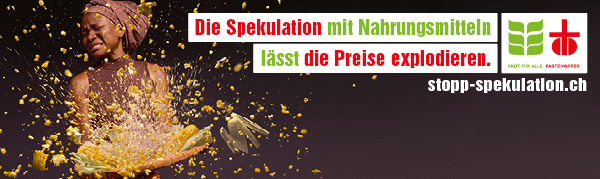 Mit Abstand grösster Anbieter solcher Finanzprodukte unter den Schweizer Banken ist die CS-Gruppe. Das Volumen ihrer Finanzprodukte auf Weizen, Mais und weitere Nahrungsrohstoffe betrug Mitte 2013 rund 2,4 Milliarden Franken. Das ist der Grund, warum Fastenopfer und Brot für alle allen voran die Credit Suisse auffordern, die Spekulation auf Nahrungsmittel zu stoppen. Mit einer grossen Online-Kampagne laden die Werke die Konsumentinnen und Konsumenten ein, sich an der Protestaktion zu beteiligen und eine Mail an Brady Dougan, Konzernchef der Credit Suisse zu schreiben. Aber auch weitere Banken und Pensionskassen sollen angeschrieben werden. Ziel ist, zu verhindern, dass mit Spargeldern oder Vermögen unserer Altersvorsorge der Hunger in der Welt vergrössert wird.